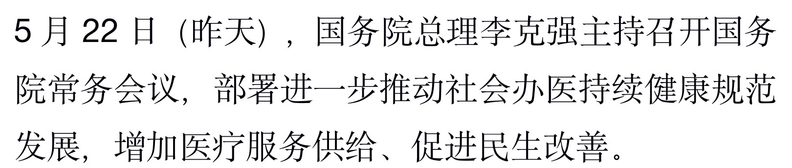 会议指出,按照建设健康中国要求,深化医药卫生体制改革,积极促进社会办医,可以有效增加群众需要的医疗服务供给、更好保障人民健康,也能更大激发市场活力、释放服务消费潜力。