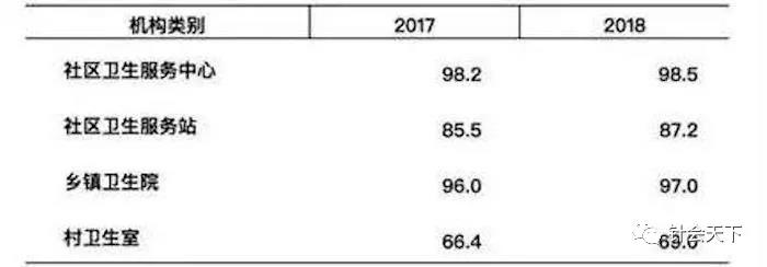 98.5%的社区卫生服务中心、87.2%社区卫生服务站和97.0%的乡镇卫生院、69.0%的村卫生室能够提供中医药服务。