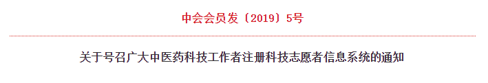 按照中国科协、科技部《关于开展2019年“全国科技工作者日”活动的通知》要求,结合第三届科技工作者日“礼赞共和国、追梦新时代”主题,学会开展了“科技专家企业行”、“中药大品种科技竞争力提升行动”和系列精准扶贫活动,并通过走访慰问科技工作者、“首都国医名师关爱下一代泰安行”、为科技工作者免费注册会员等为广大科技工作者办了一批实事好事。现根据本次活动要求,为更好的做好科技志愿服务工作,特号召广大中医药科技工作者注册中国科协“科技志愿者信息系统”,注册时请选择“中华中医药学会科技志愿者总队”,具体注册方法详见附件。