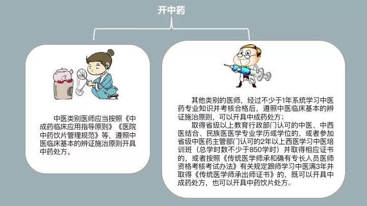 通知要求要加强目录外药品的处方管理。对未纳入目录的化药、生物制品,医师要严格落实《处方管理办法》等有关规定,按照药品说明书规定的适应证、疾病诊疗规范指南和相应处方权限,合理选择药品品种、给药途径和给药剂量并开具处方。对于中药,中医类别医师应当按照《中成药临床应用指导原则》《医院中药饮片管理规范》等,遵照中医临床基本的辨证施治原则开具中药处方。其他类别的医师,经过不少于1年系统学习中医药专业知识并考核合格后,遵照中医临床基本的辨证施治原则,可以开具中成药处方;取得省级以上教育行政部门认可的中医、中西医结合、民族医医学专业学历或学位的,或者参加省级中医药主管部门认可的2年以上西医学习中医培训班(总学时数不少于850学时)并取得相应证书的,或者按照《传统医学师承和确有专长人员医师资格考核考试办法》有关规定跟师学习中医满3年并取得《传统医学师承出师证书》的,既可以开具中成药处方,也可以开具中药饮片处方。