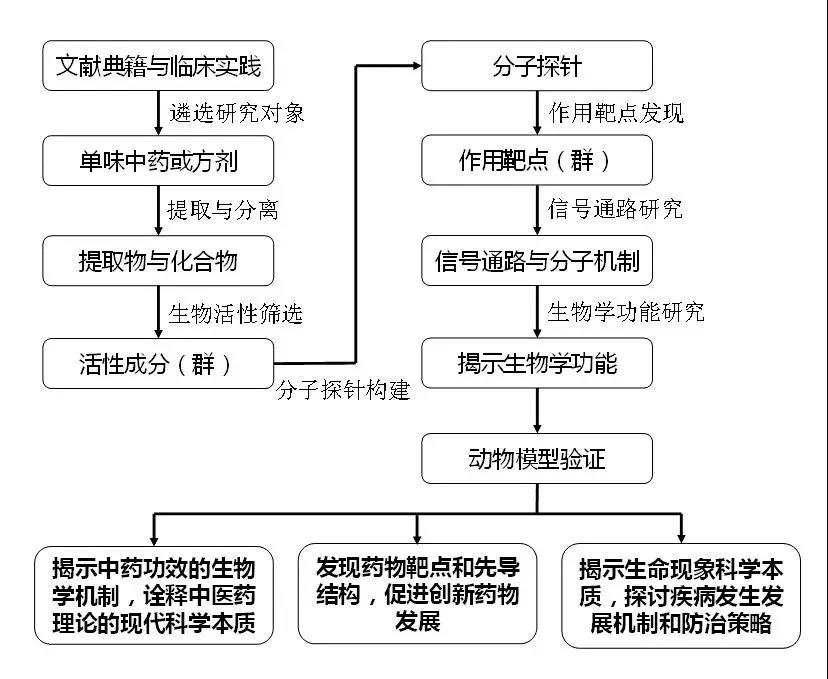 (4)以中药活性分子为工具,探讨生命过程的科学本质和疾病的发生发展机制。