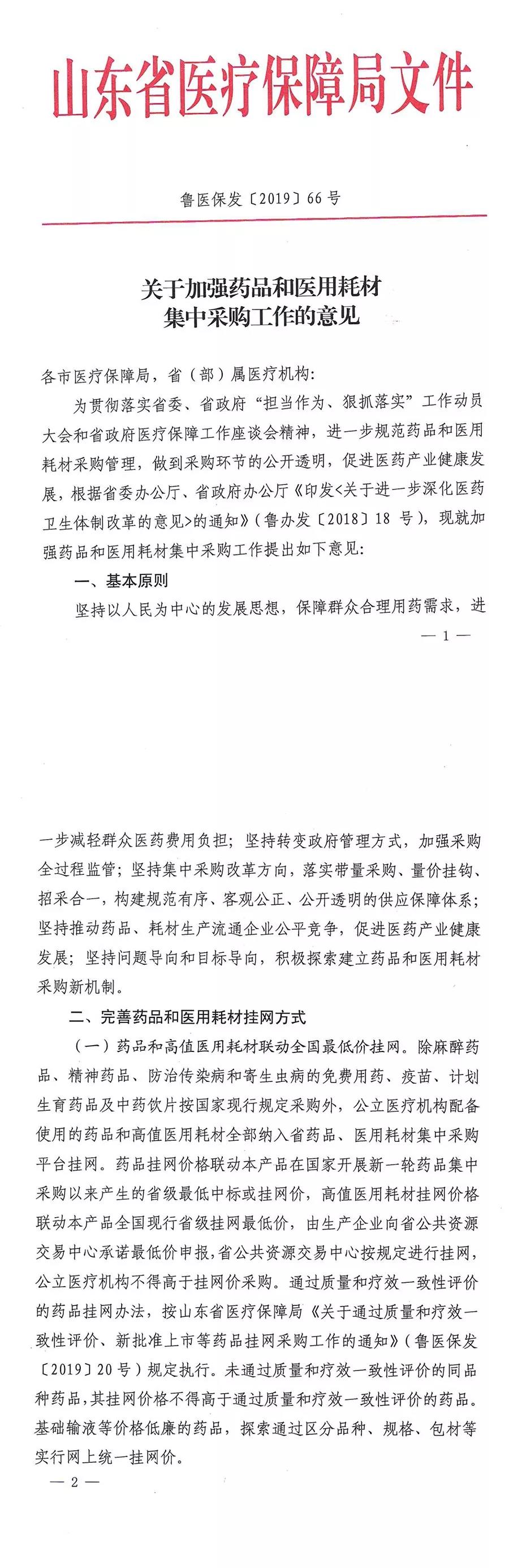 《意见》要求药品和高值医用耗材联动全国最低价挂网。对于药品的挂网价格,山东给出了确切的定义:药品挂网价格联动本产品在国家开展新一轮药品集中采购以来产生的省级最低中标或挂网价。各省主动申请降价以求换量的未中标品种,此后在山东省亦将受到联动,可见全国药品价格统一已成为趋势。